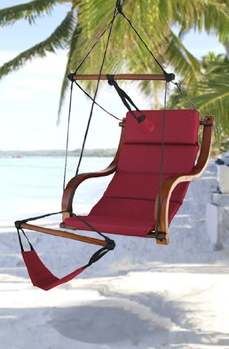 Redefine hanging out with the Deluxe Padded Hammock Lounge Chair. From steam-bentcontoured arms to the generously padded seat and footrest, this hammock chairdelivers head to toe comfort. Strong and durable polyester cord runs through thehardwood frame to keep you securely suspended in a state of free-swinging comfort.Adjustable breaks determine the amount of play in the ropes, giving you control